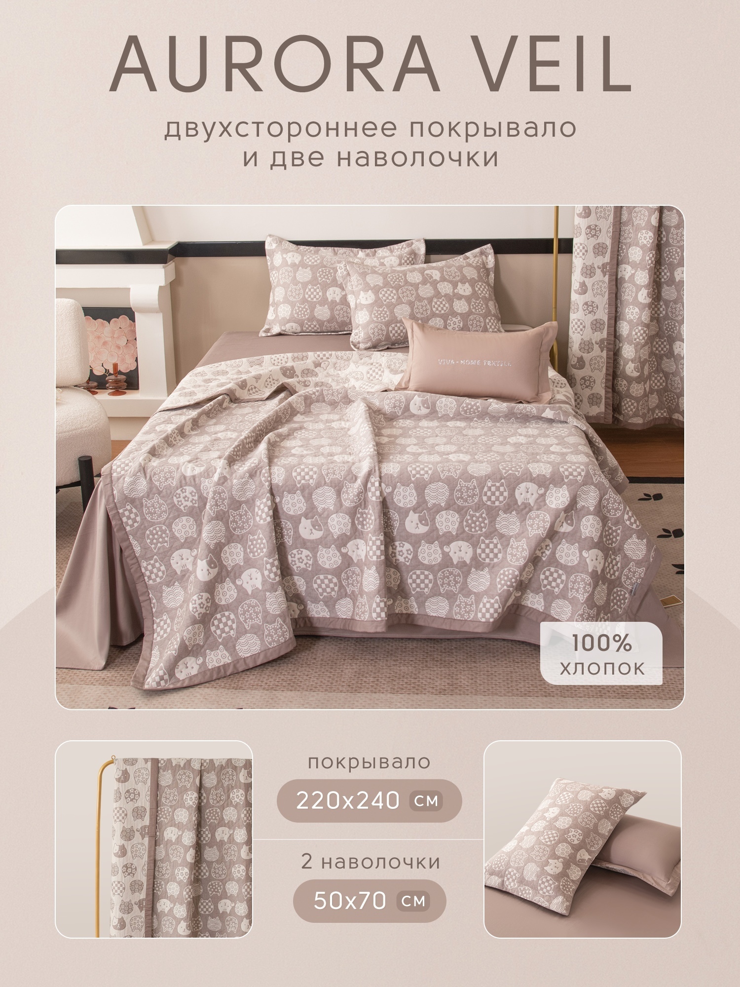 Покрывало двухстороннее и две наволочки Aurora Veil PAV003