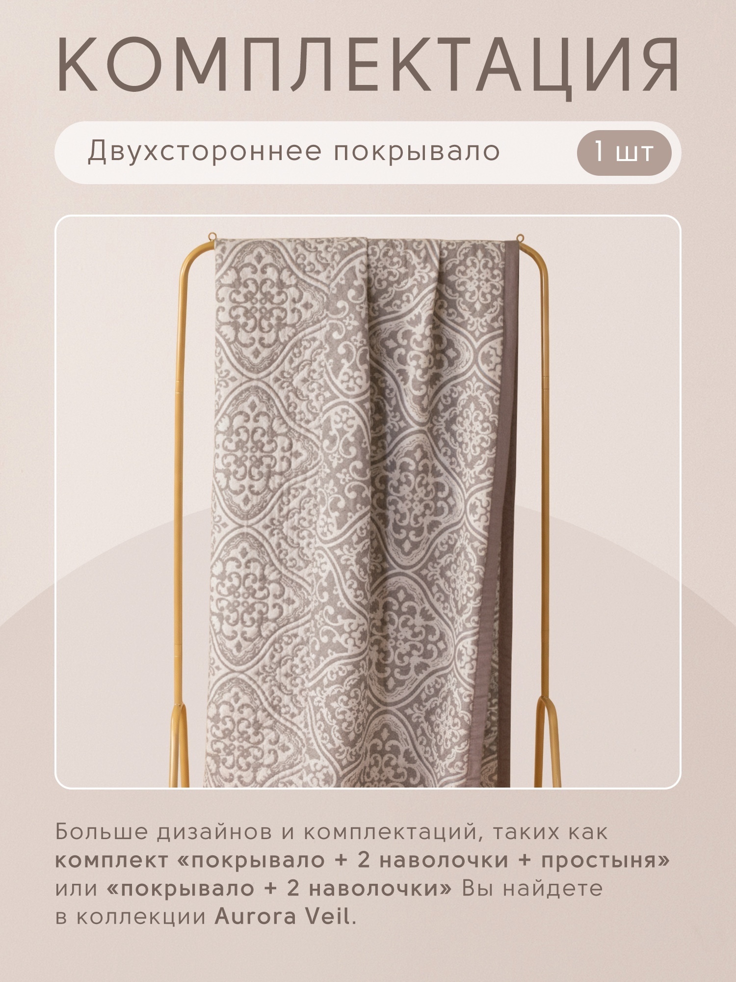 Покрывало двухстороннее и две наволочки Aurora Veil PAV004
