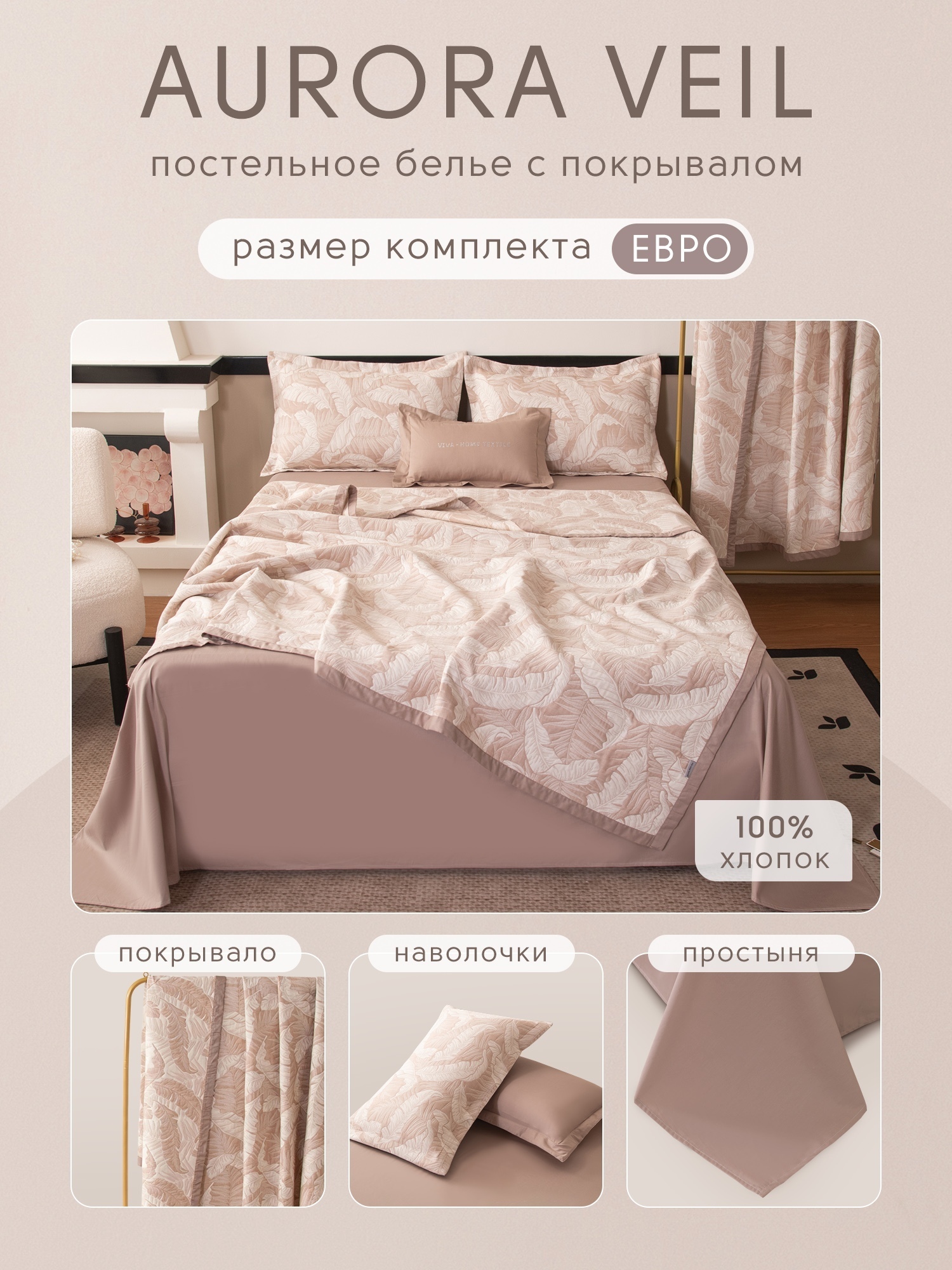 Комплект постельного белья Сатин Aurora Veil с Покрывалом AV002