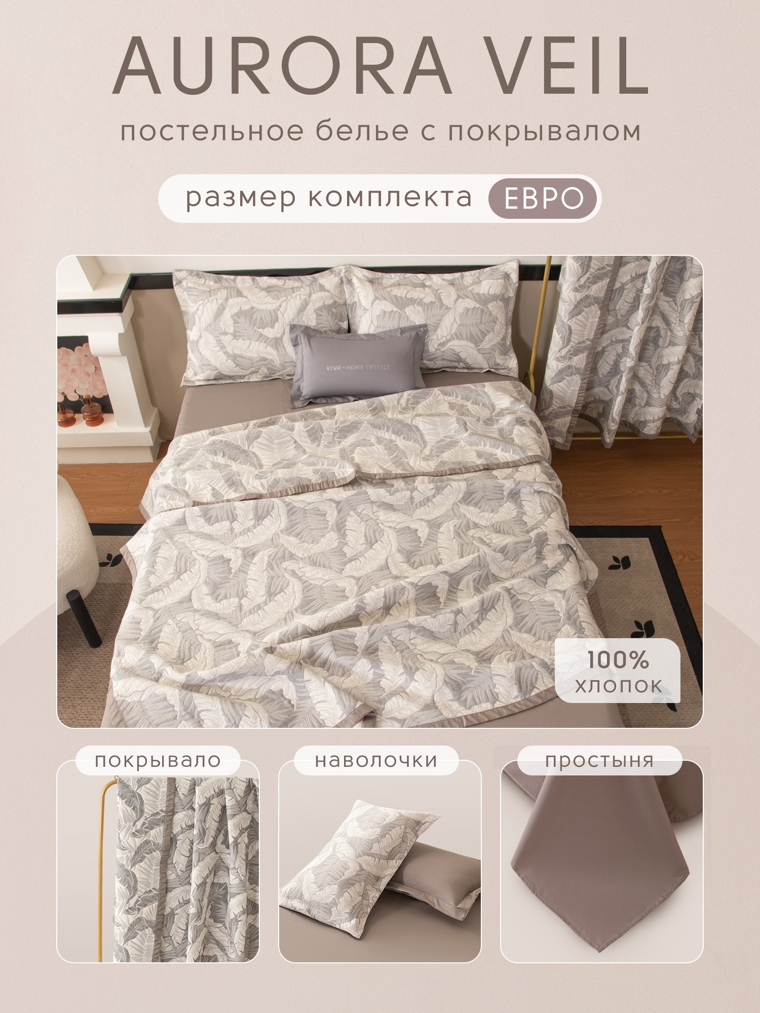 Комплект постельного белья Сатин Aurora Veil с Покрывалом AV008
