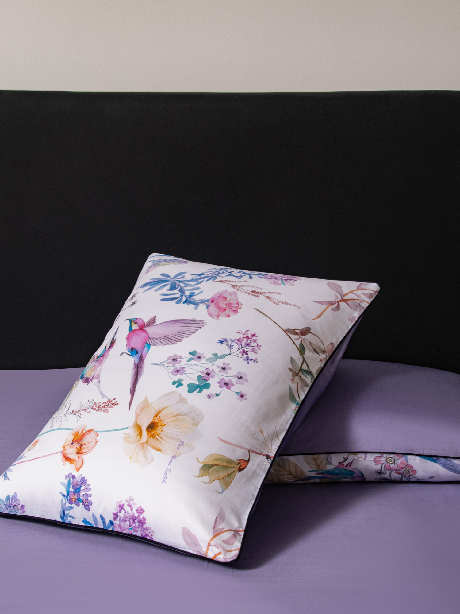 Ткань компаньон: Наволочки 50*70 с разных сторон разной расцветки, наволочки 70*70 однотонные в цвет простыни, пододеяльник с разных сторон разного цвета, простыня однотонная такого же цвета, как низ пододеяльника.