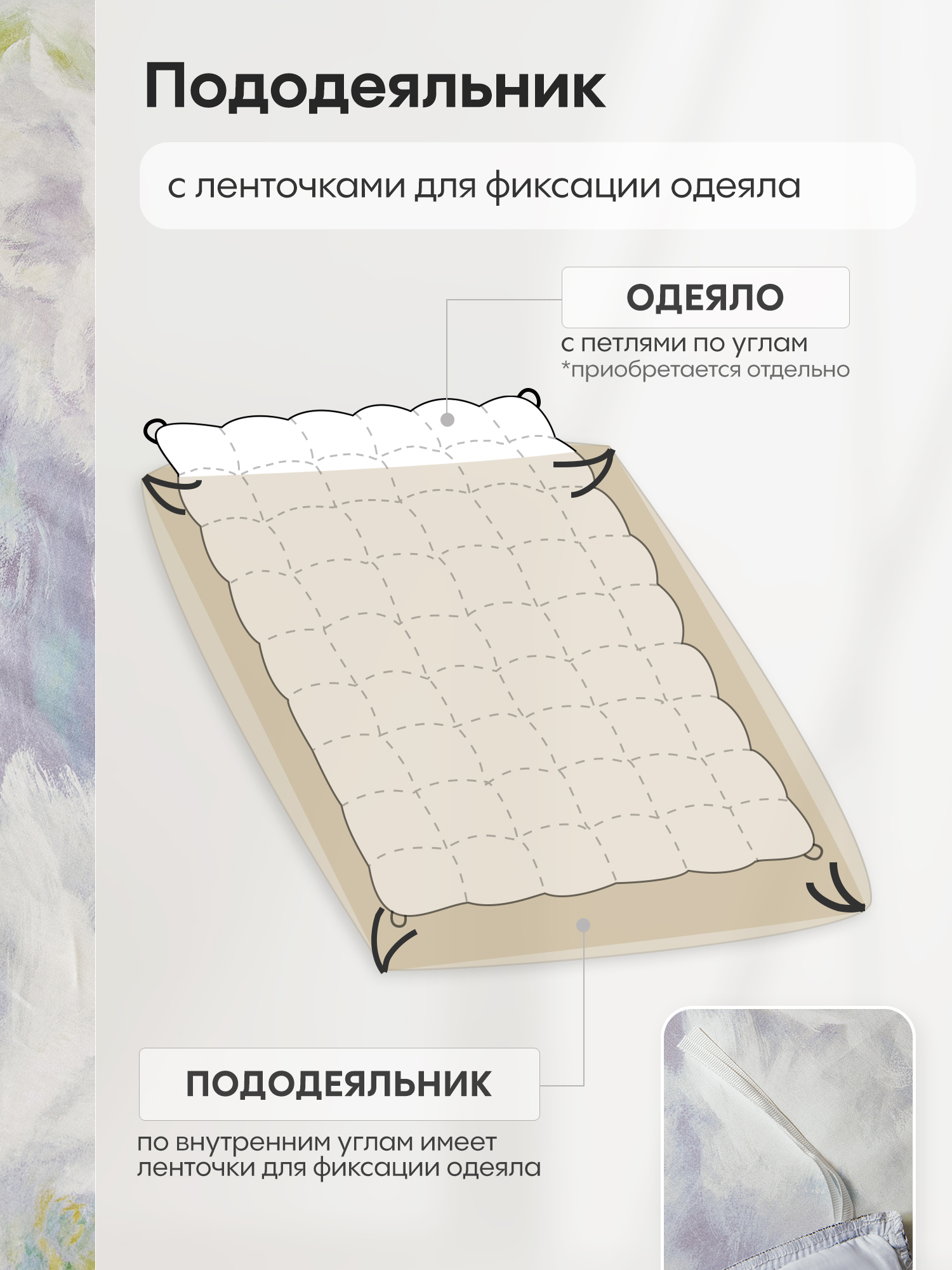 Пододеяльник и наволочки: Украшены кантом по периметру