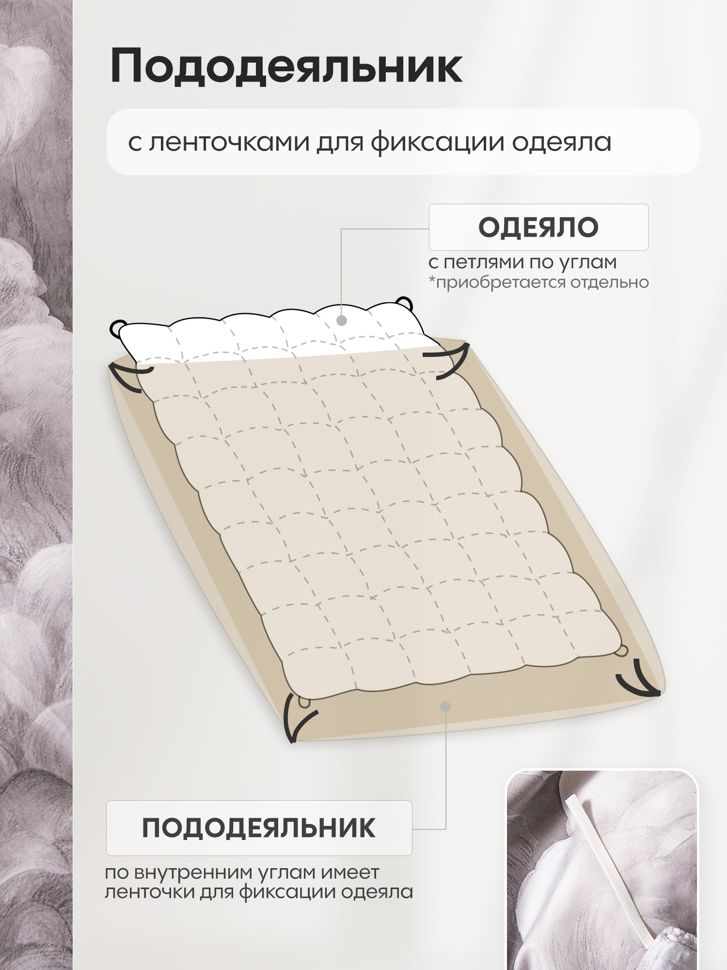 Пододеяльник и наволочки: Украшены кантом по периметру