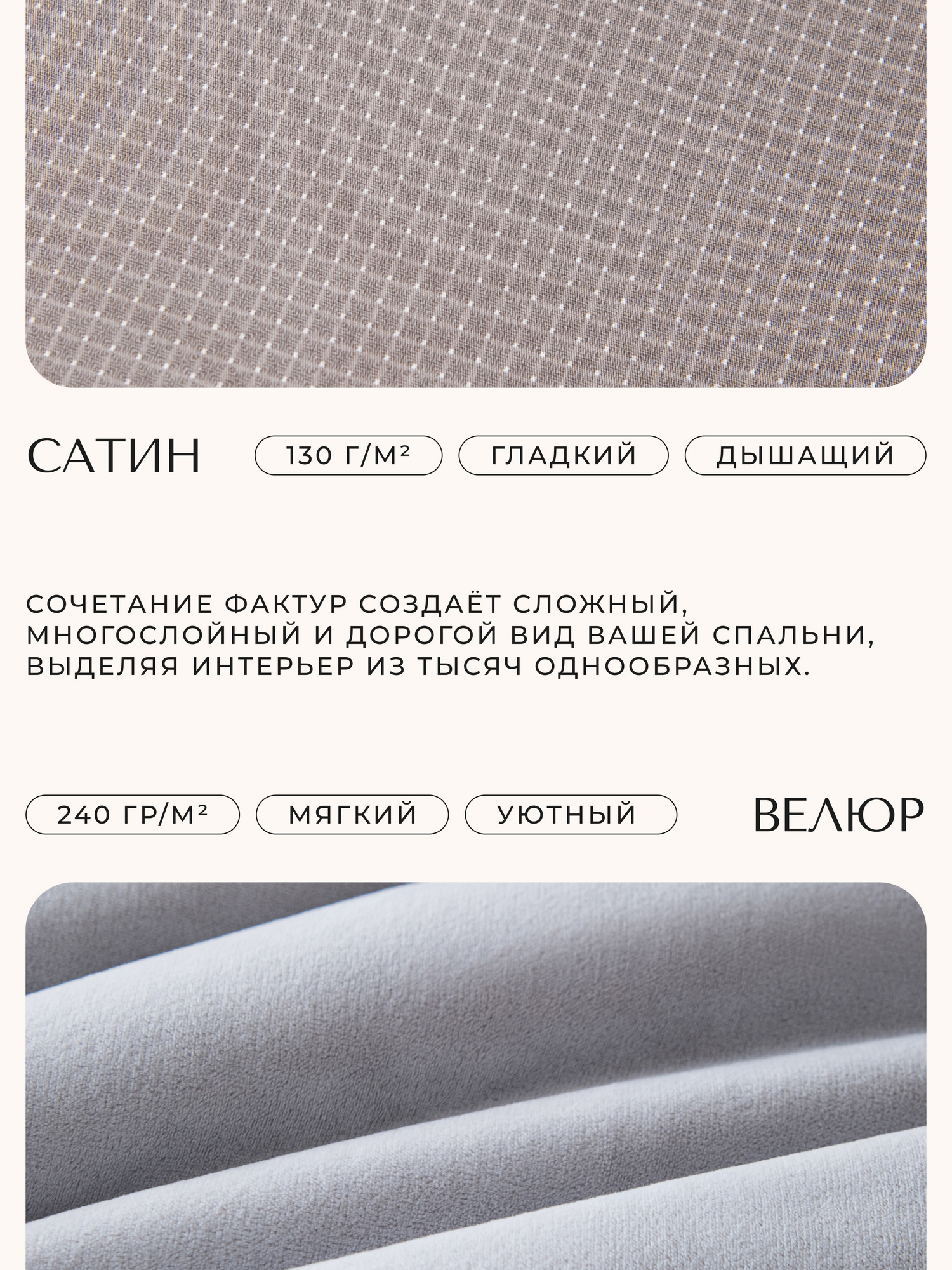 Плотность: 130 гр/м2 (сатин) / 240 гр/м2 (велюр)