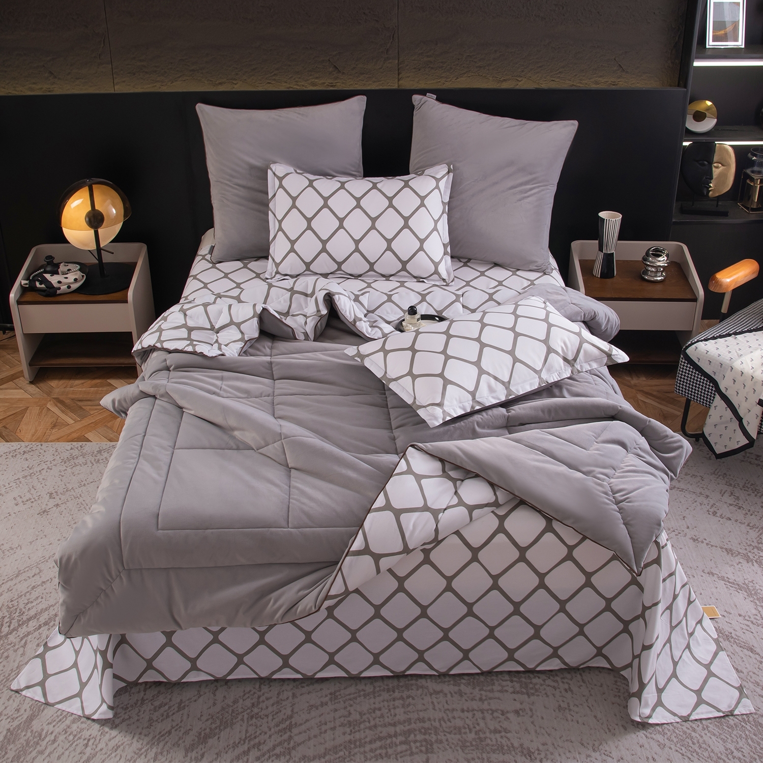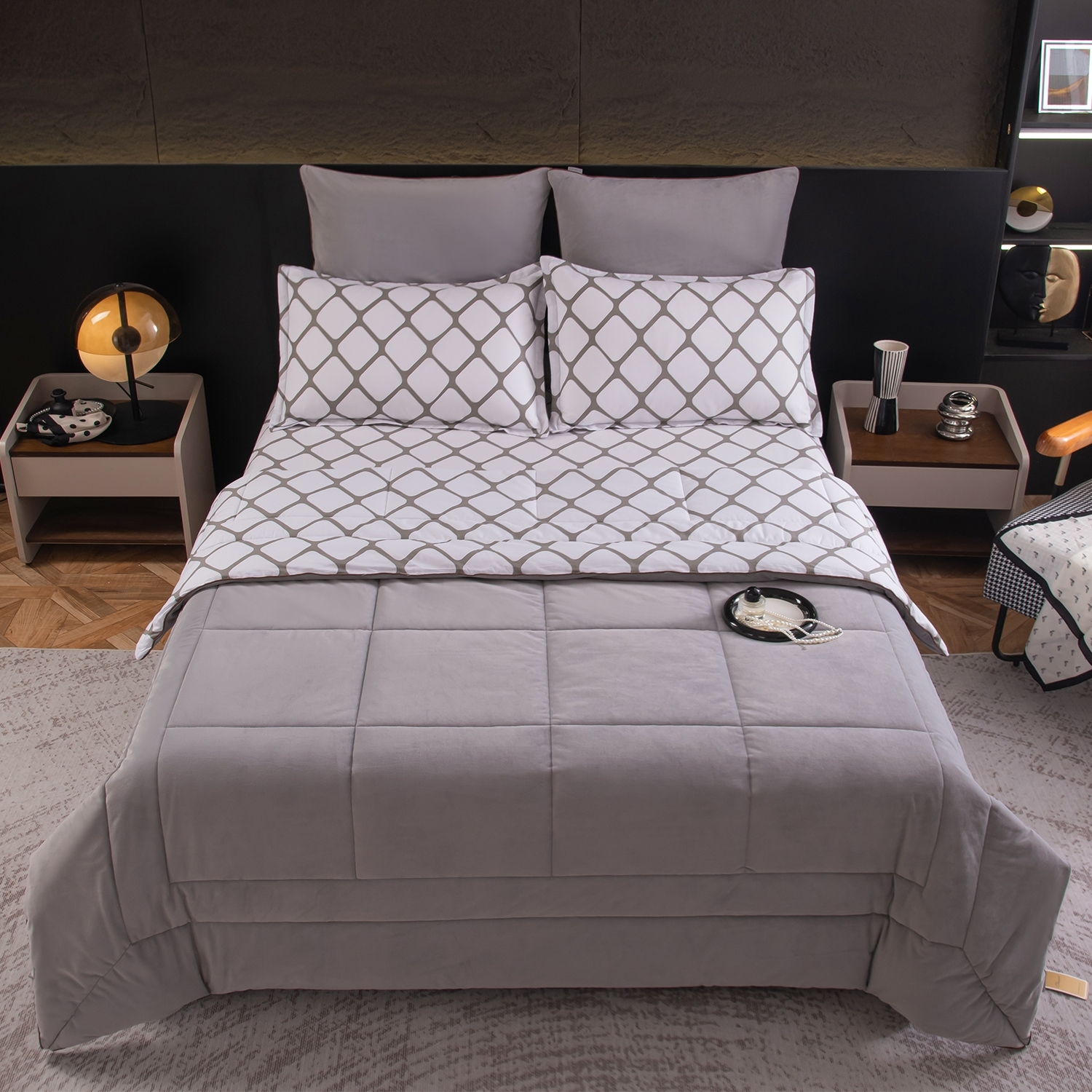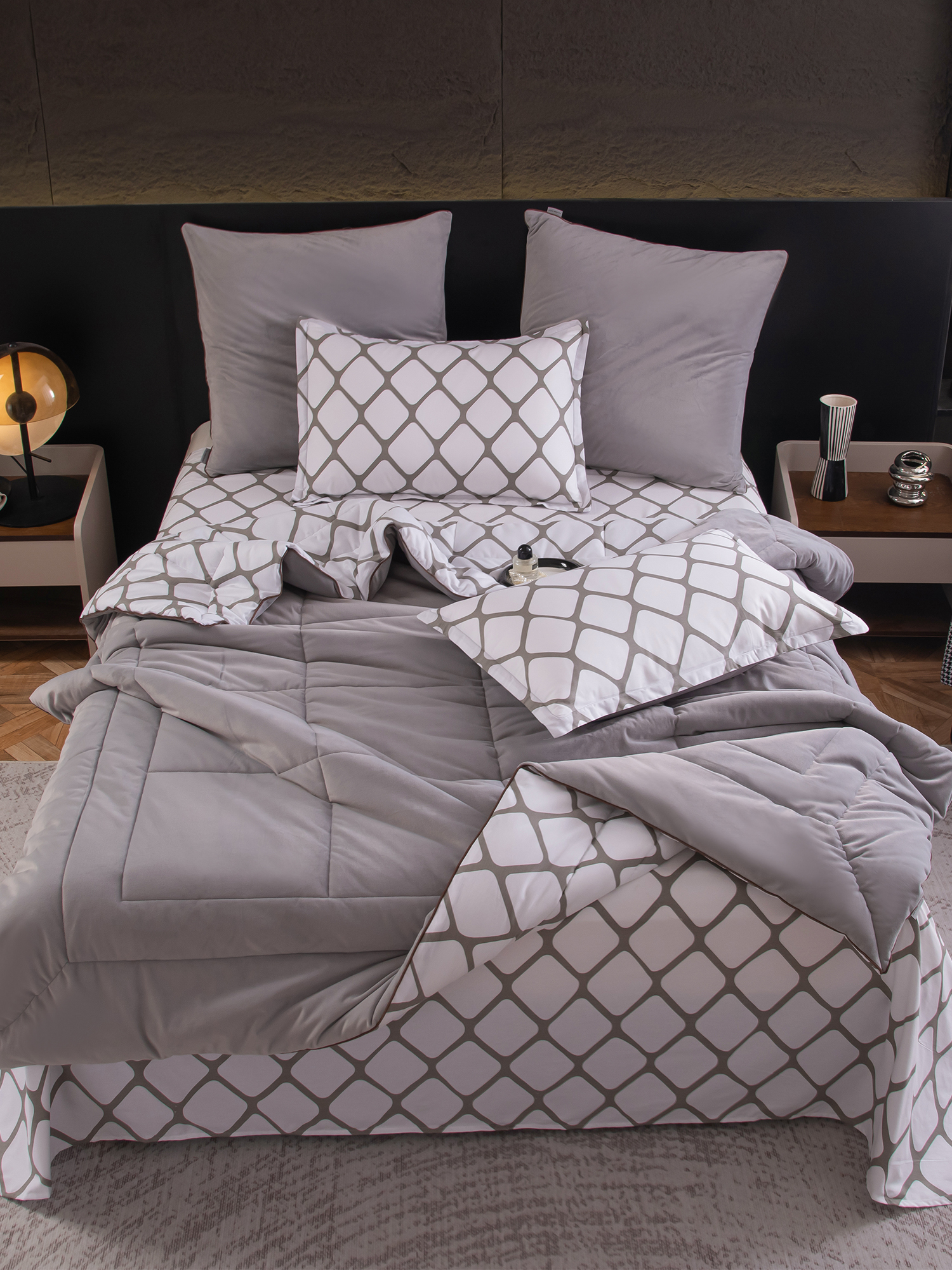 Данный комплект - это готовое решение для спальни, в котором красота, комфорт и практичность гармонично объединены.