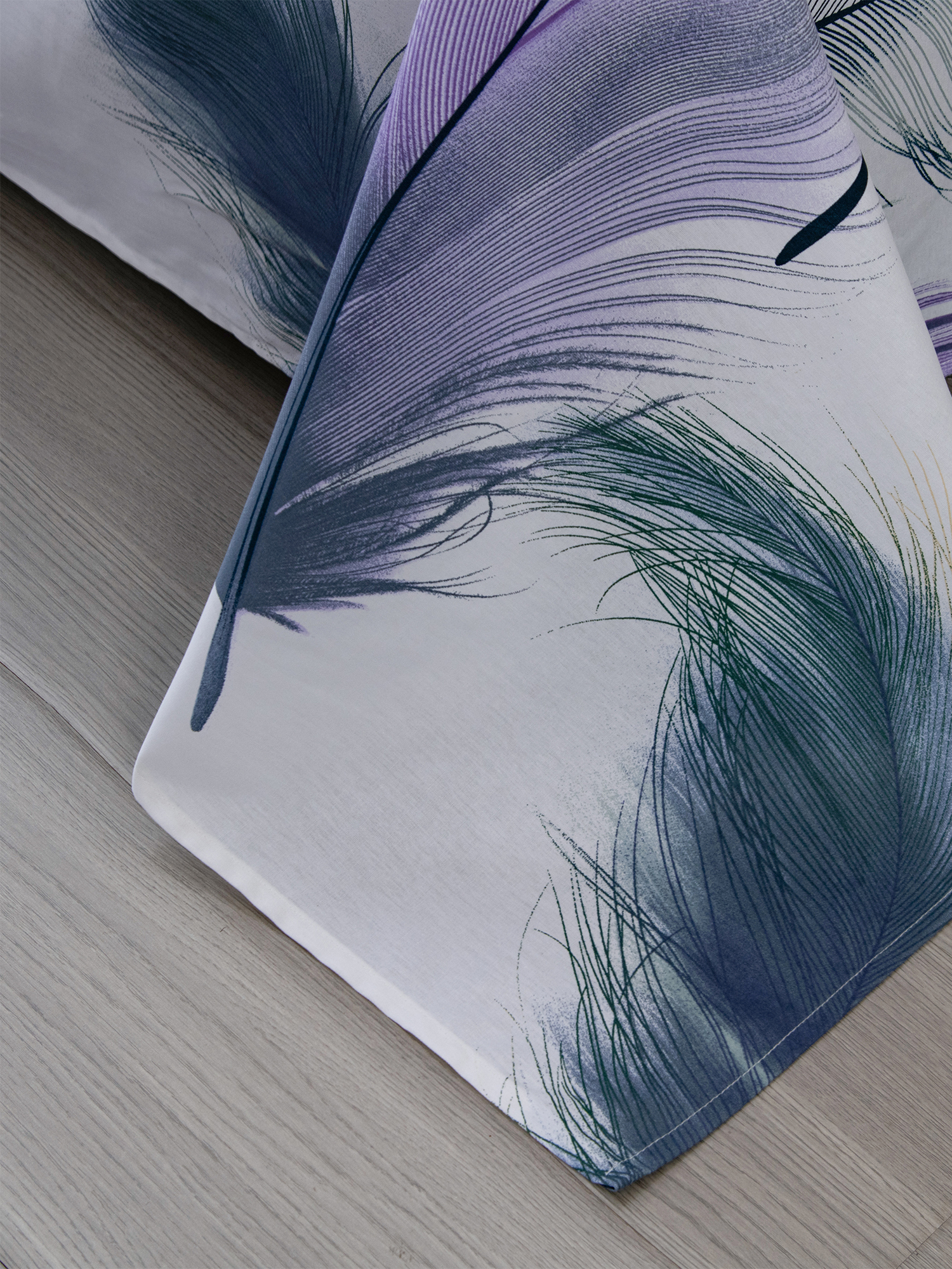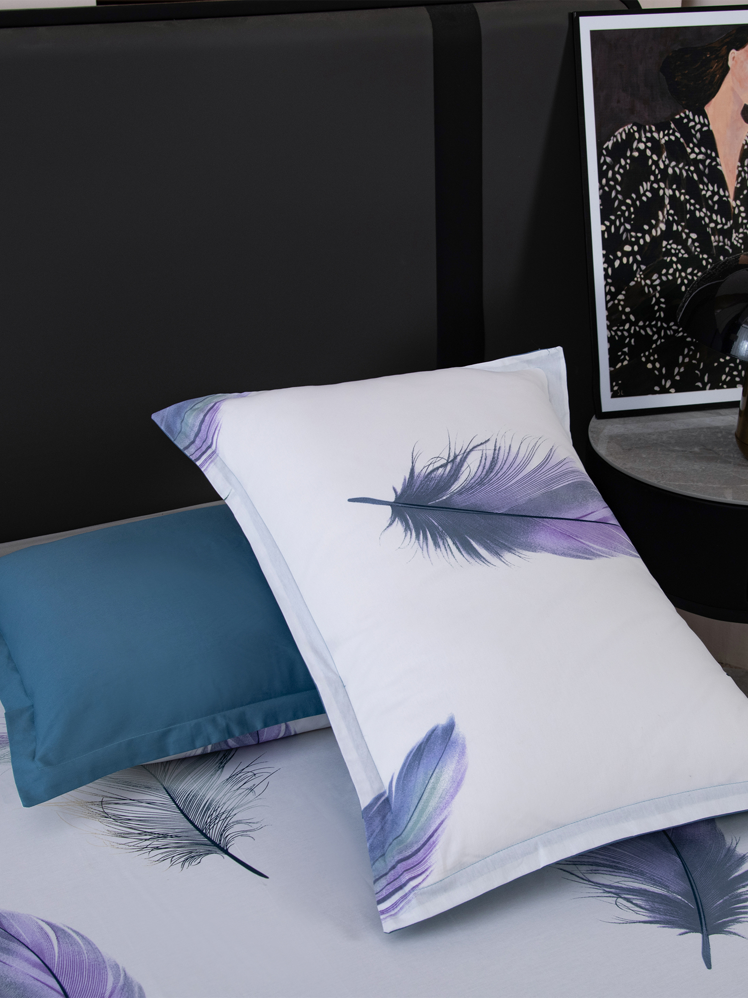 Ткань компаньон: Одеяло и наволочки 70x70 с разных сторон разной расцветки и ткани; наволочки 50x70 с разных сторон разной расцветки (принт/однотонный); простыня такого же цвета, как низ одеяла.