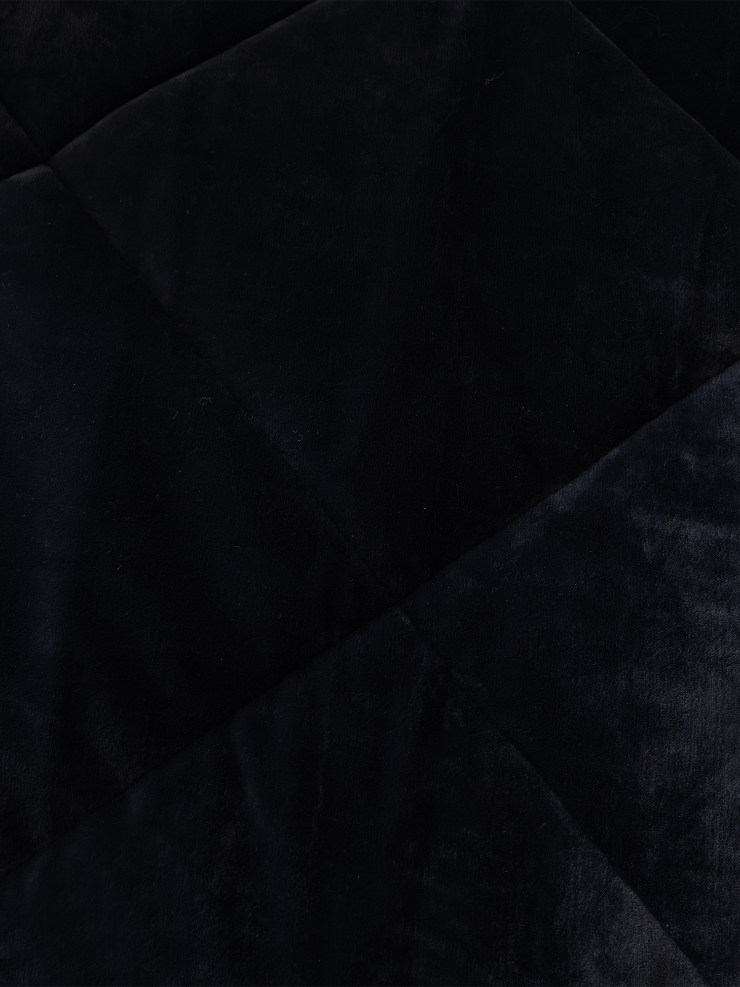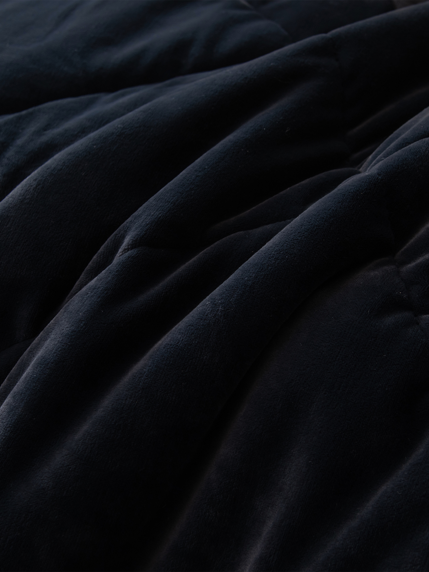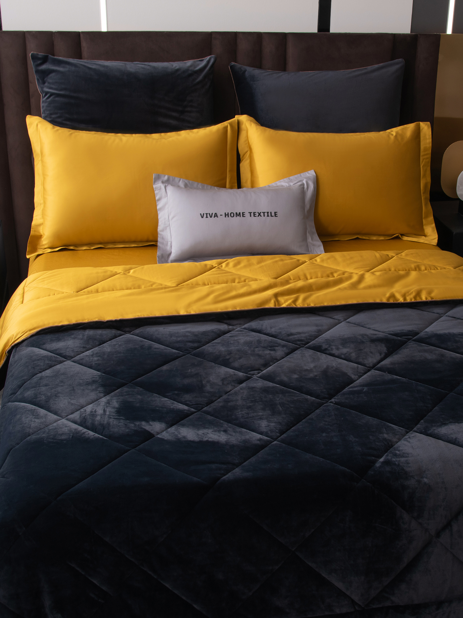 Одеяло выполнено с изысканной геометрической стёжкой и оформлено бархатным кантом. Верхняя сторона - мягкий велюр, придающий комплекту благородный внешний вид и особую уютность. Нижняя сторона - гладкий сатин из 100% египетского хлопка, отличающийся особой прочностью, шелковистым блеском и естественной воздухопроницаемостью.