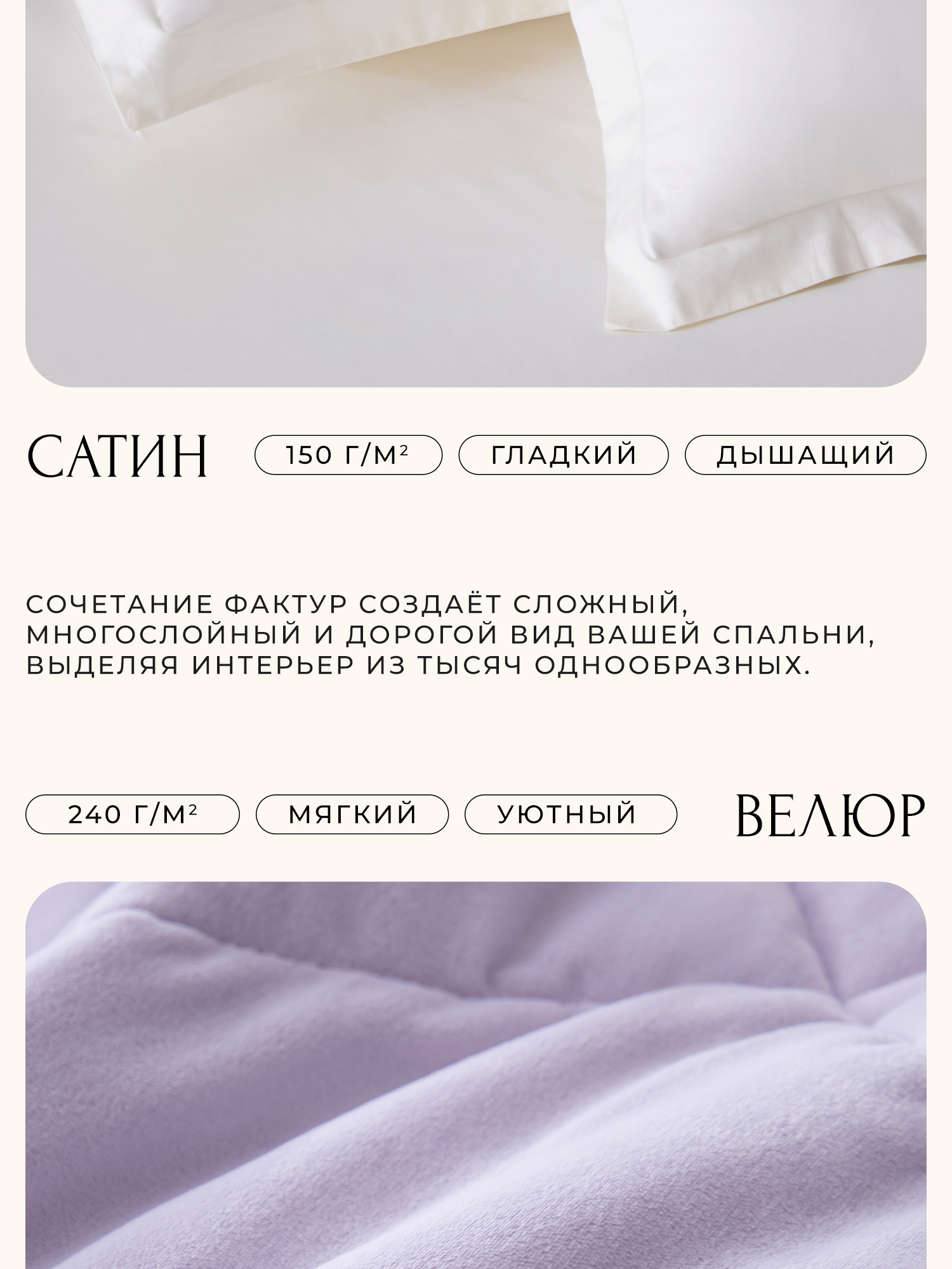 Плотность: 150 гр/м2 (сатин) / 240 гр/м2 (велюр)