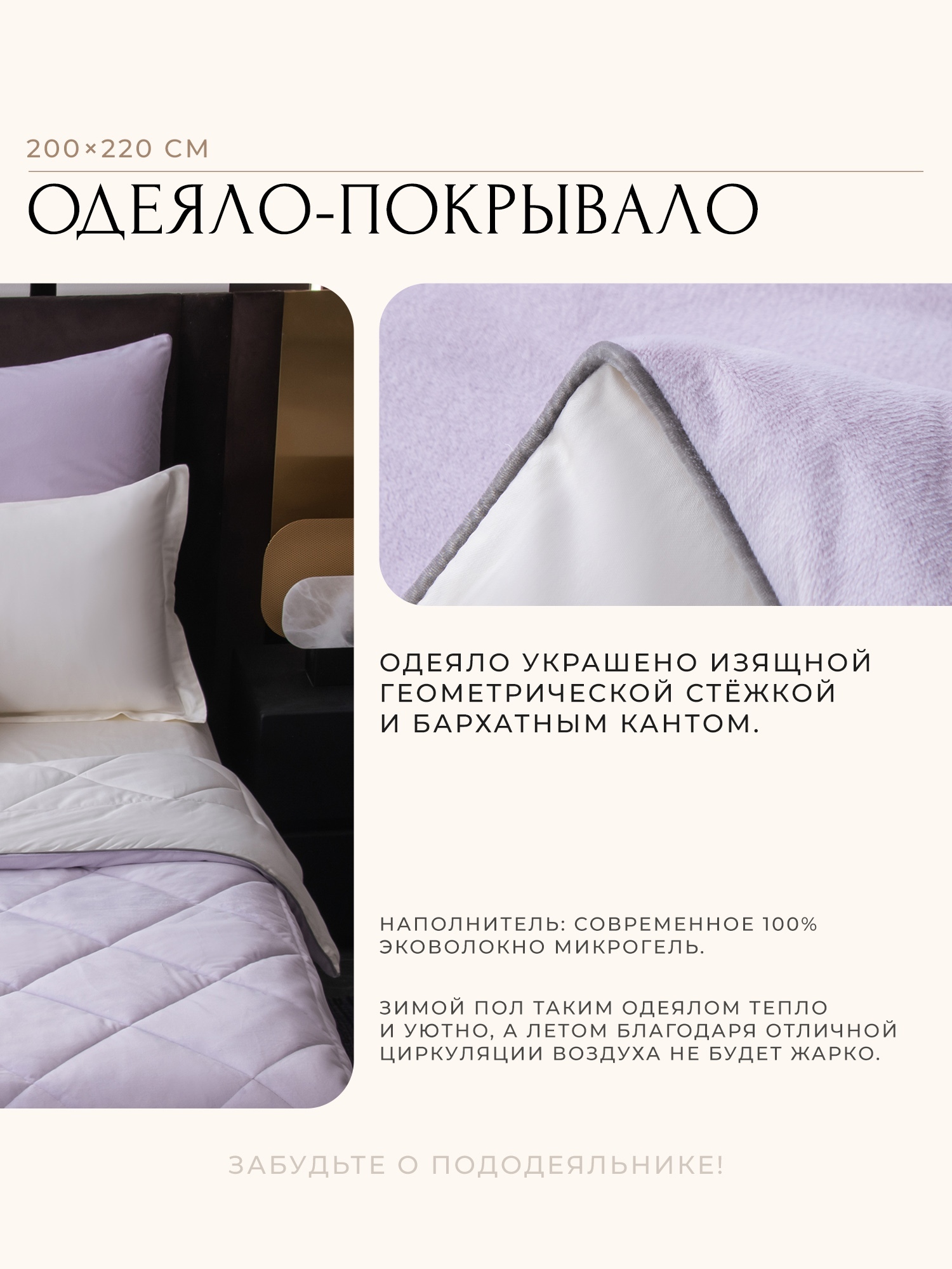 Одеяло-покрывало (стеганое): 100% эковолокно микрогель (наполнитель)