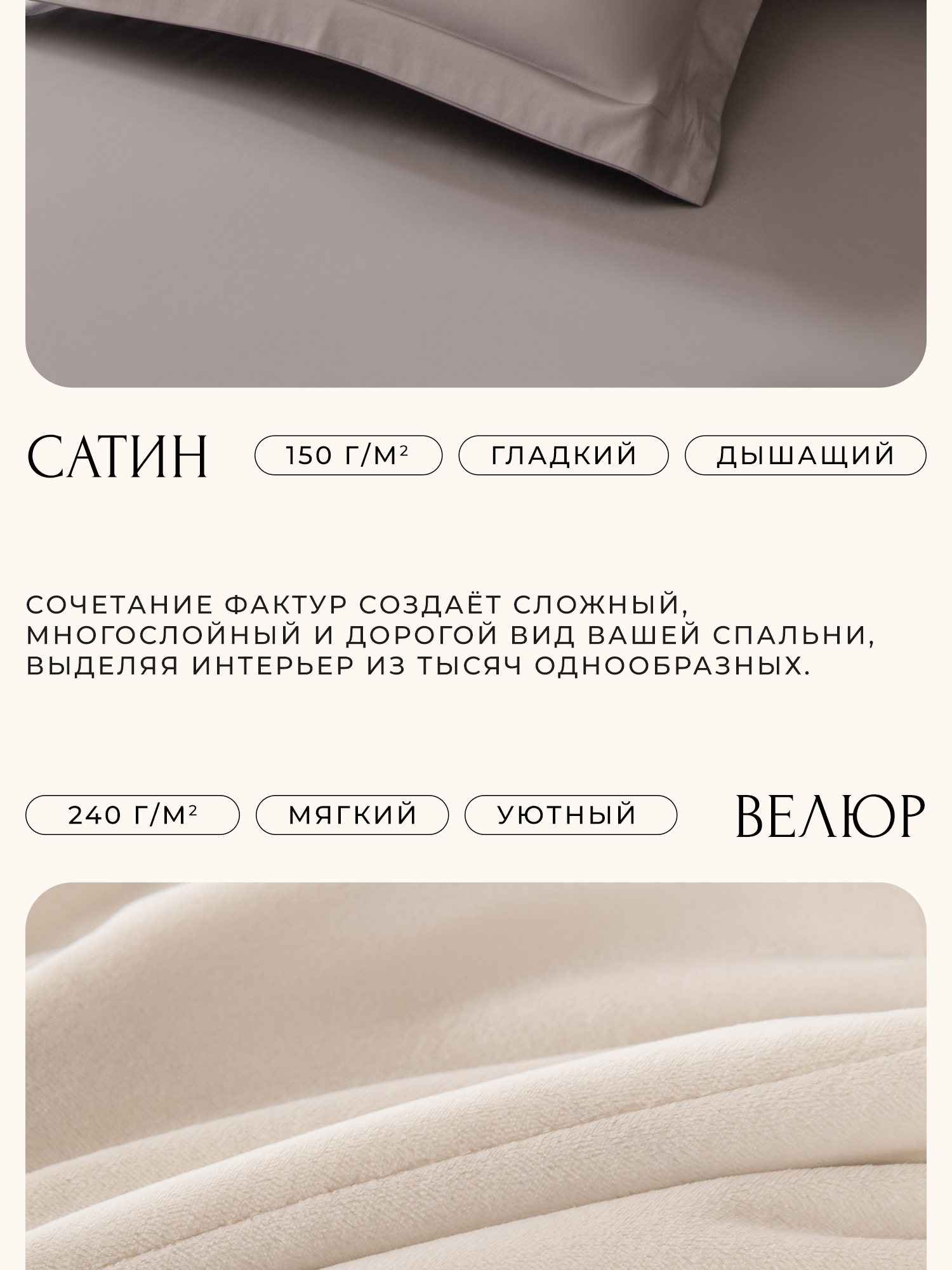 Плотность: 150 гр/м2 (сатин) / 240 гр/м2 (велюр)