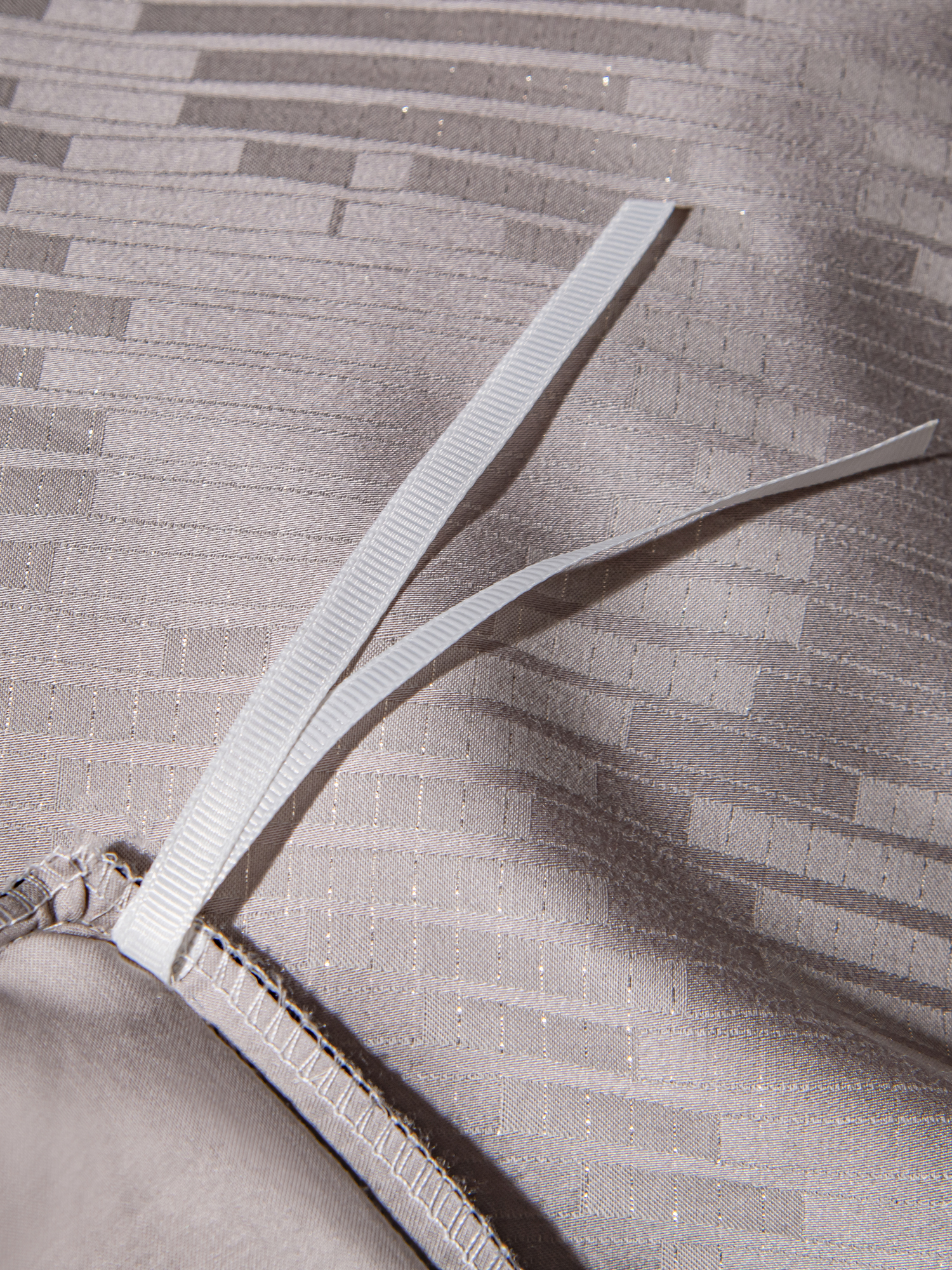 - Наволочки 50x70 выполнены с разных сторон из разных тканей: лицевая сторона - жаккард с золотыми нитями, оборотная - гладкий сатин.