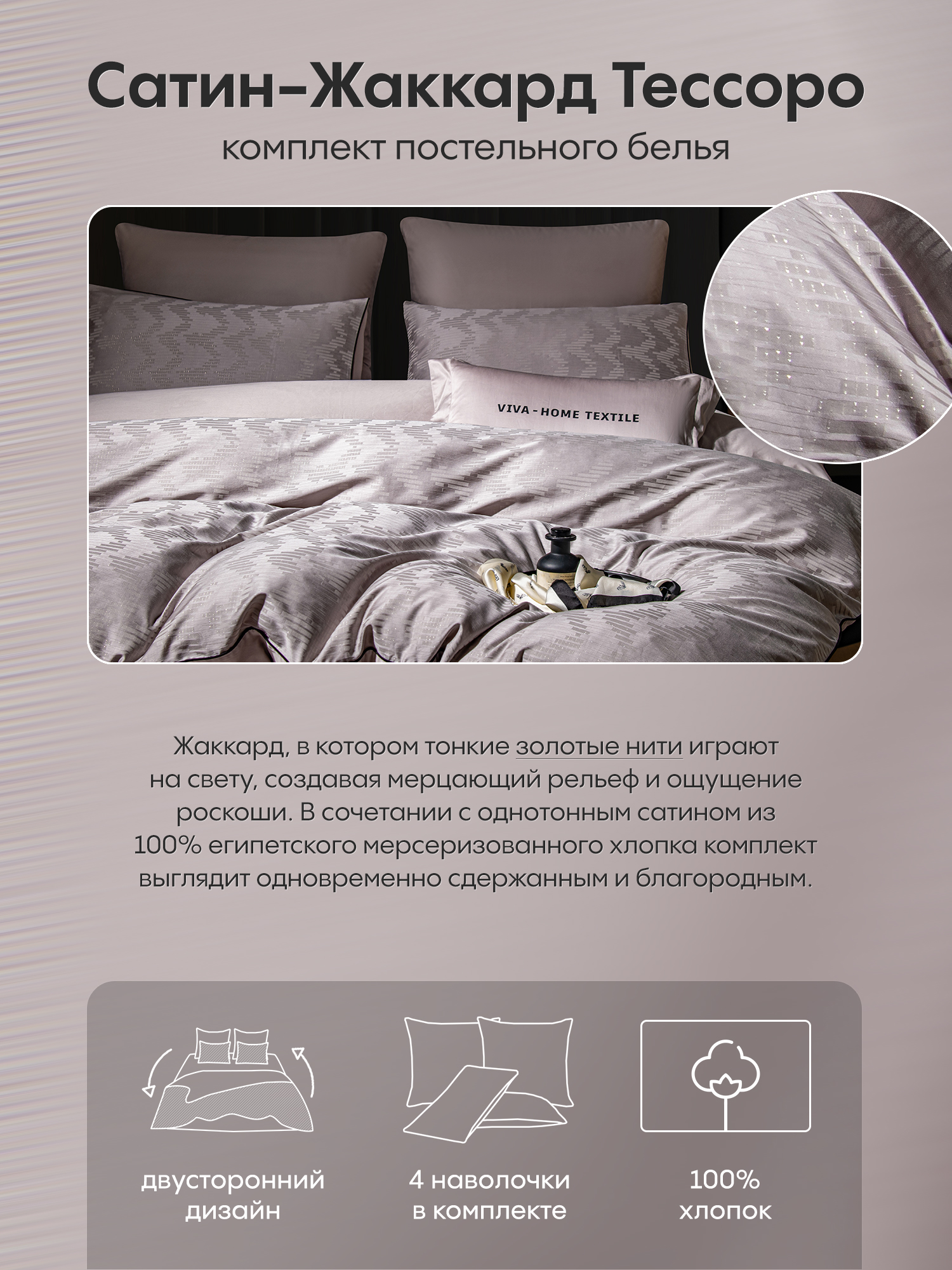 Коллекция Сатин-Жаккард Тессоро - это утончённое сочетание благородных материалов, выразительной фактуры и продуманного комфорта, созданное для по-настоящему роскошной спальни.