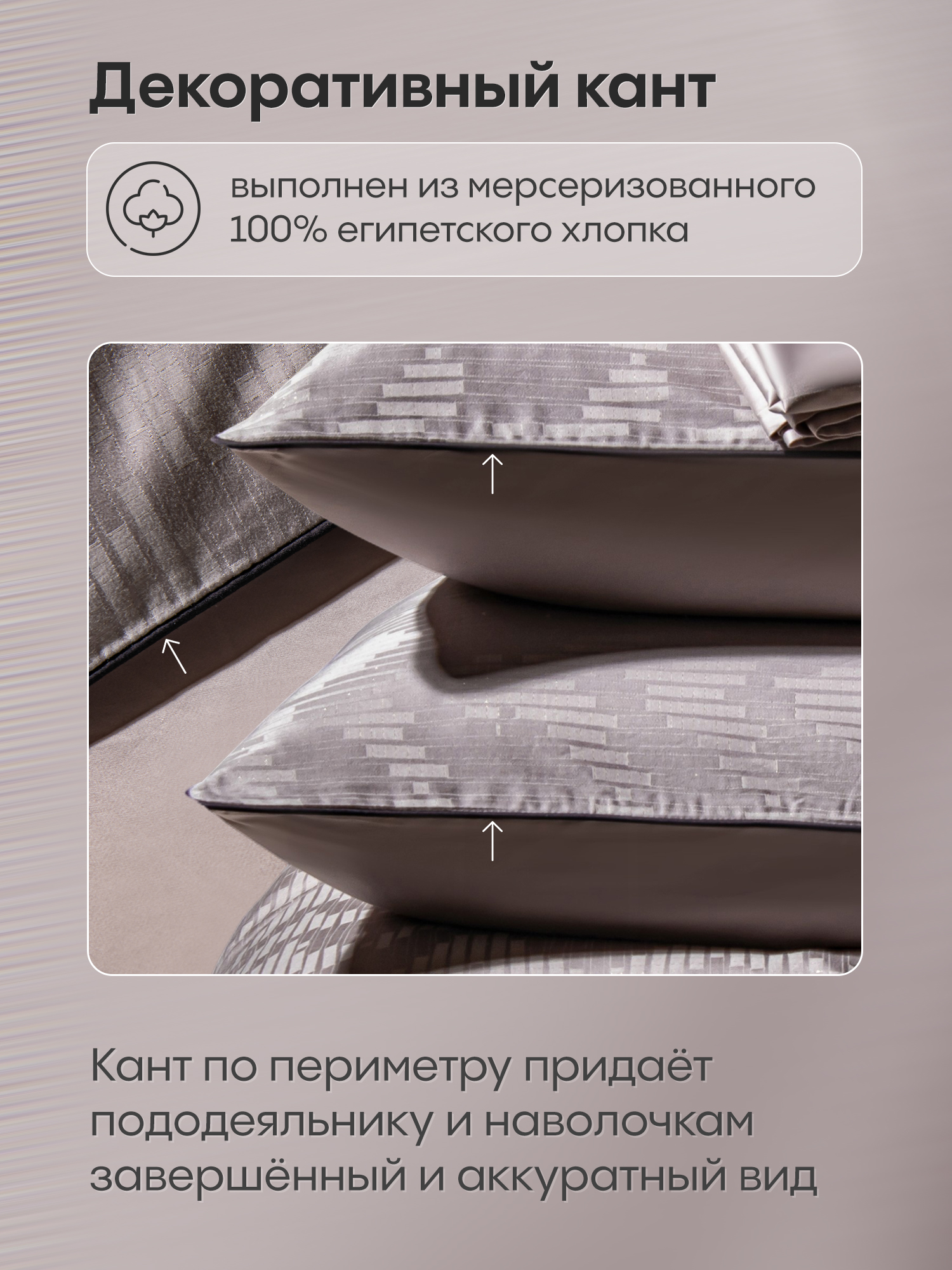 Изящный хлопковый кант по периметру пододеяльника и наволочек становится выразительным штрихом, который завершает образ комплекта и усиливает ощущение внимания к каждой детали.