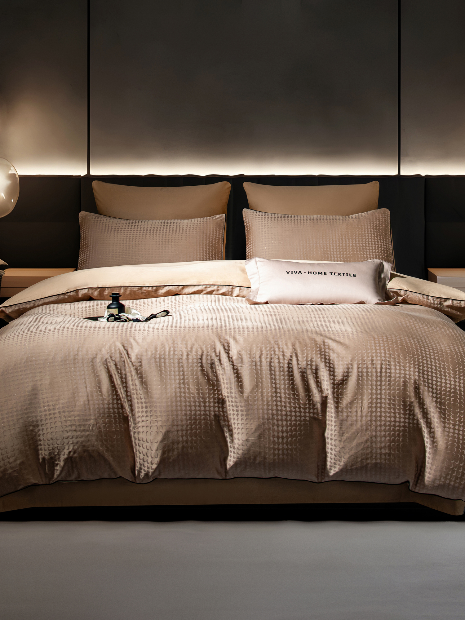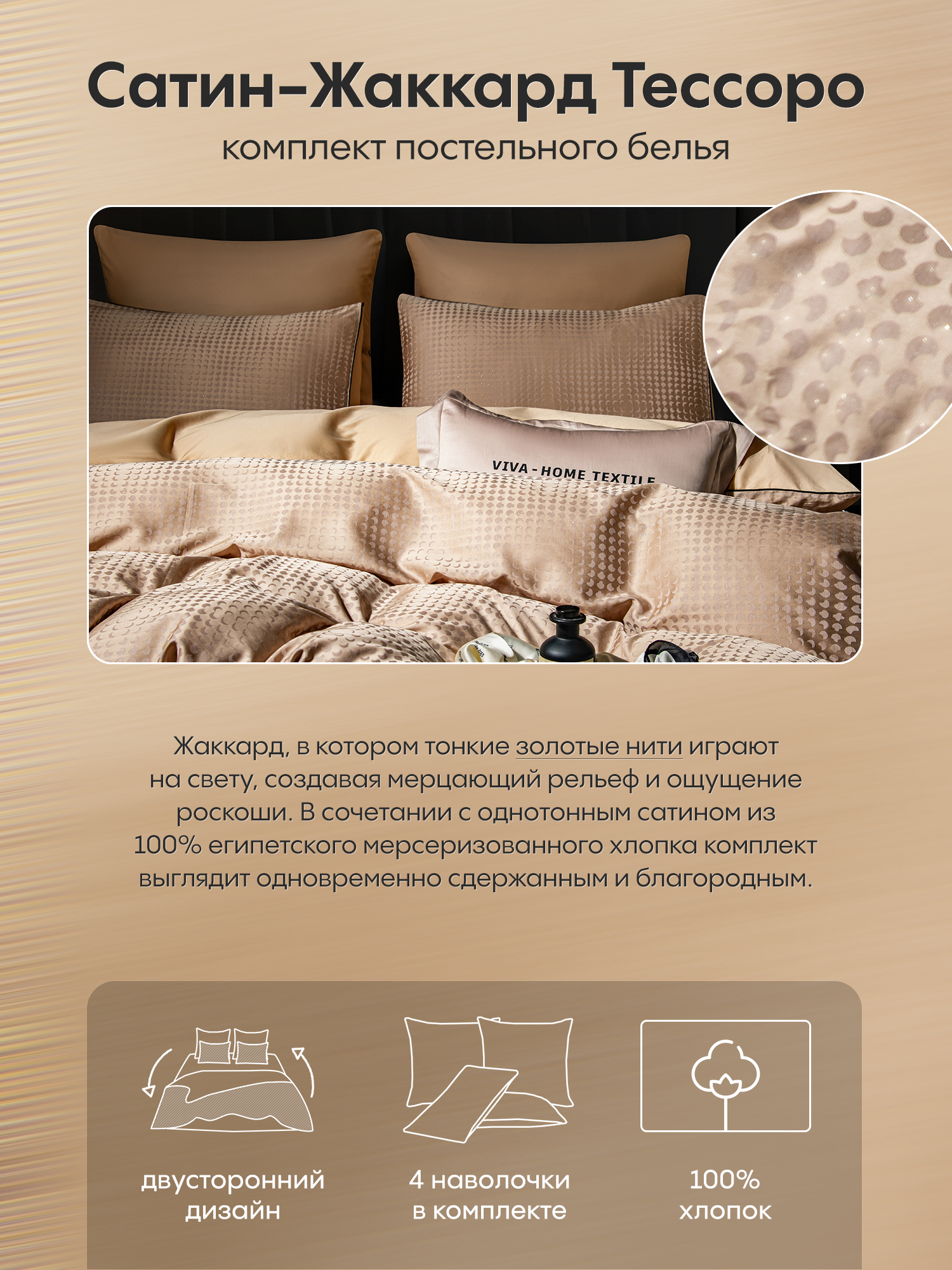 Коллекция Сатин-Жаккард Тессоро - это утончённое сочетание благородных материалов, выразительной фактуры и продуманного комфорта, созданное для по-настоящему роскошной спальни.