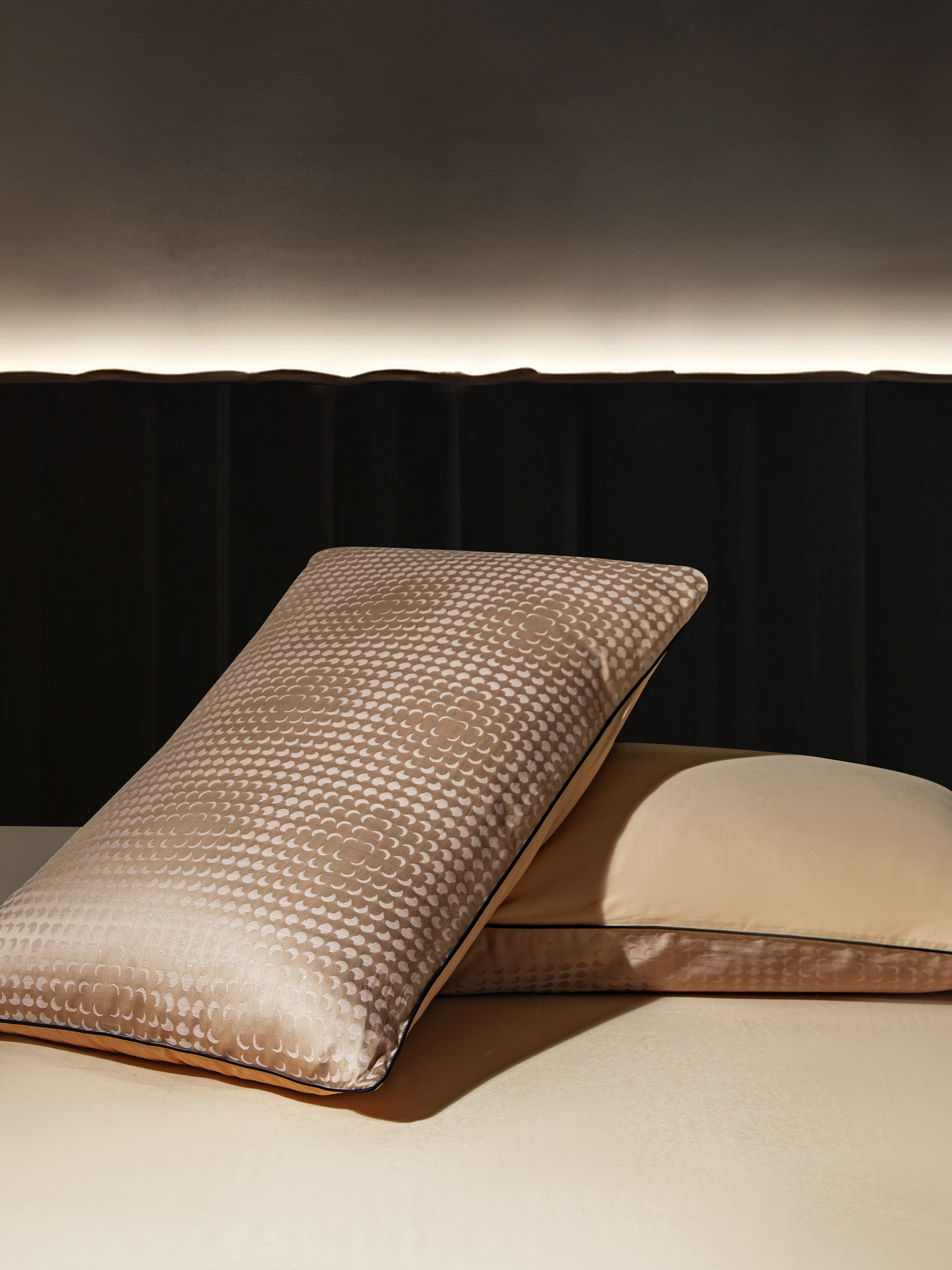 Гладкий сатин из 100% египетского мерсеризованного хлопка идеально дополняет жаккард: он шелковистый на ощупь, хорошо пропускает воздух и поддерживает комфортный микроклимат во время сна. Натуральный состав делает ткань гипоаллергенной, приятной к телу и подходящей для ежедневного использования.