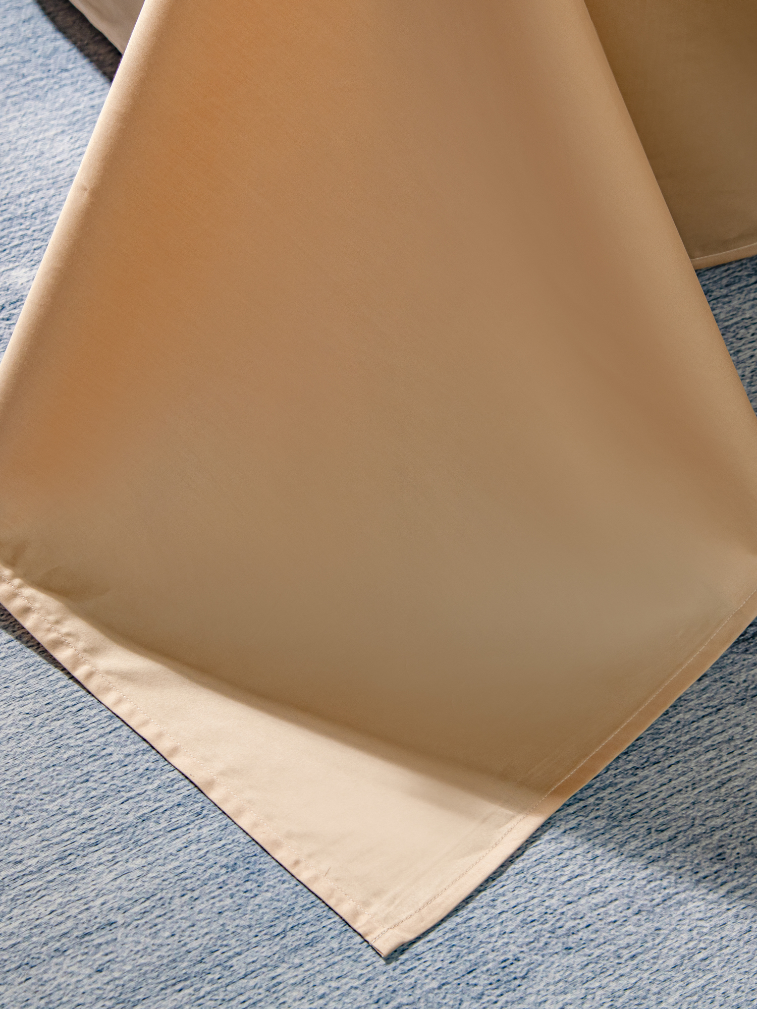 - Большая простыня из однотонного сатина идеально сочетается по цвету с нижней стороной пододеяльника.