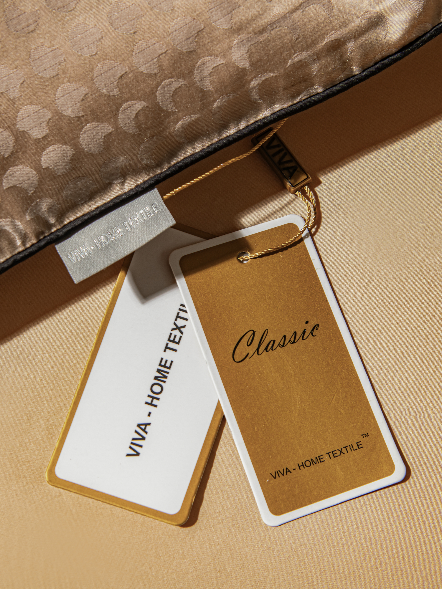 - Наволочки 50x70 выполнены с разных сторон из разных тканей: лицевая сторона - жаккард с золотыми нитями, оборотная - гладкий сатин.